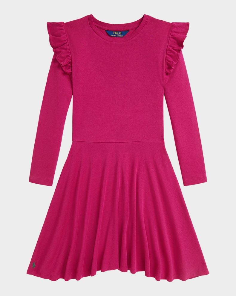 Girl's Ruffled Rib-Knit Long-Sleeve Dress