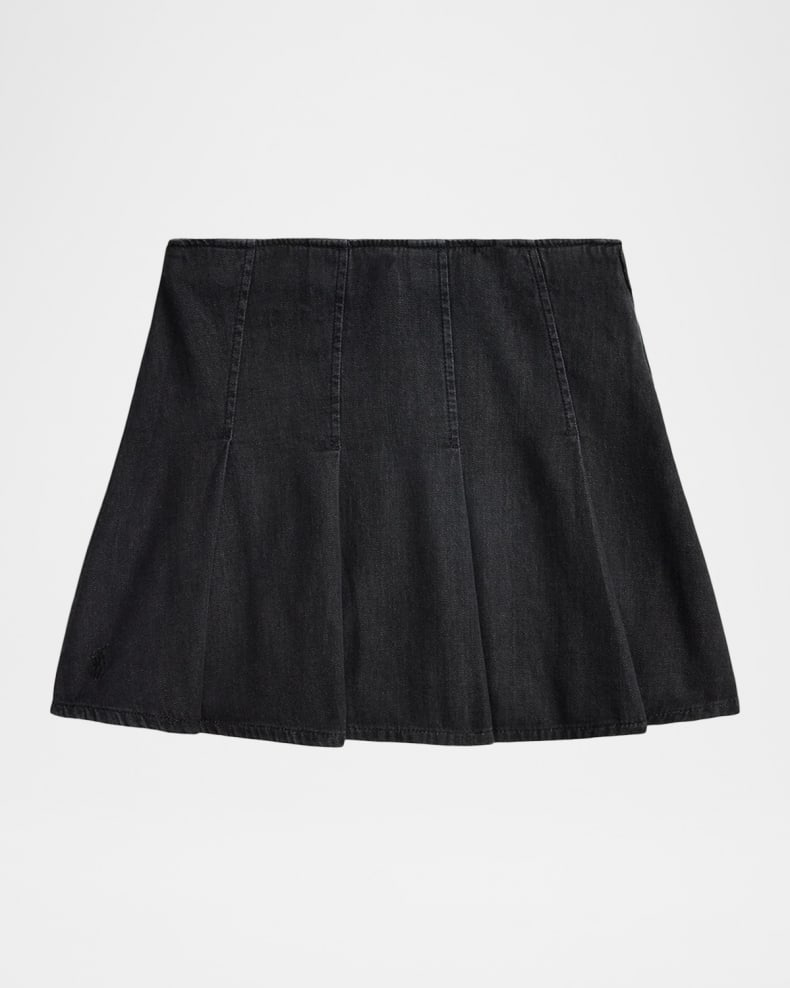 Girl's Pleated Cotton Denim Skirt