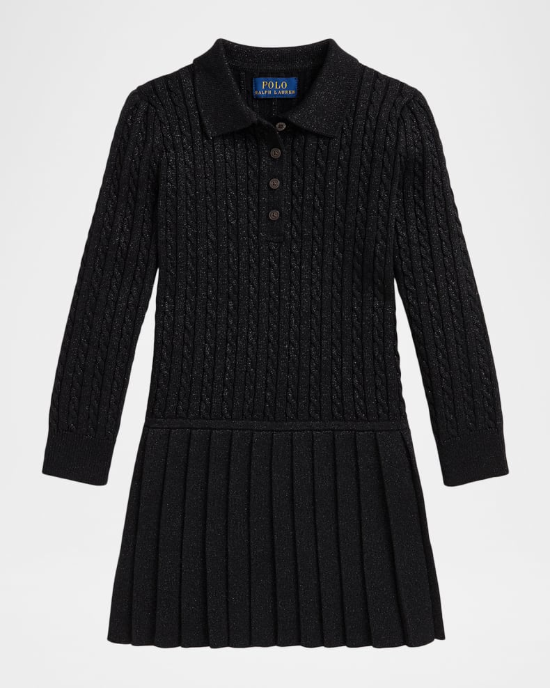Girl's Metallic Mini-Cable Polo Sweater Dress